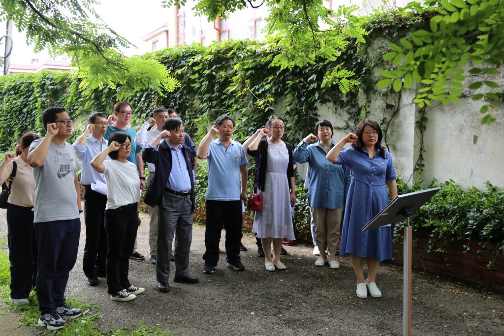 随后大家参观楸木园校区,见证了老一辈西林人初创公司的艰辛和不懈奋斗的精神。彭志远副董事长提出了如何再充分利用楸木园老校区的设想和建议。参观结束后全体教师党员怀着景仰的心情重温了入党誓词。