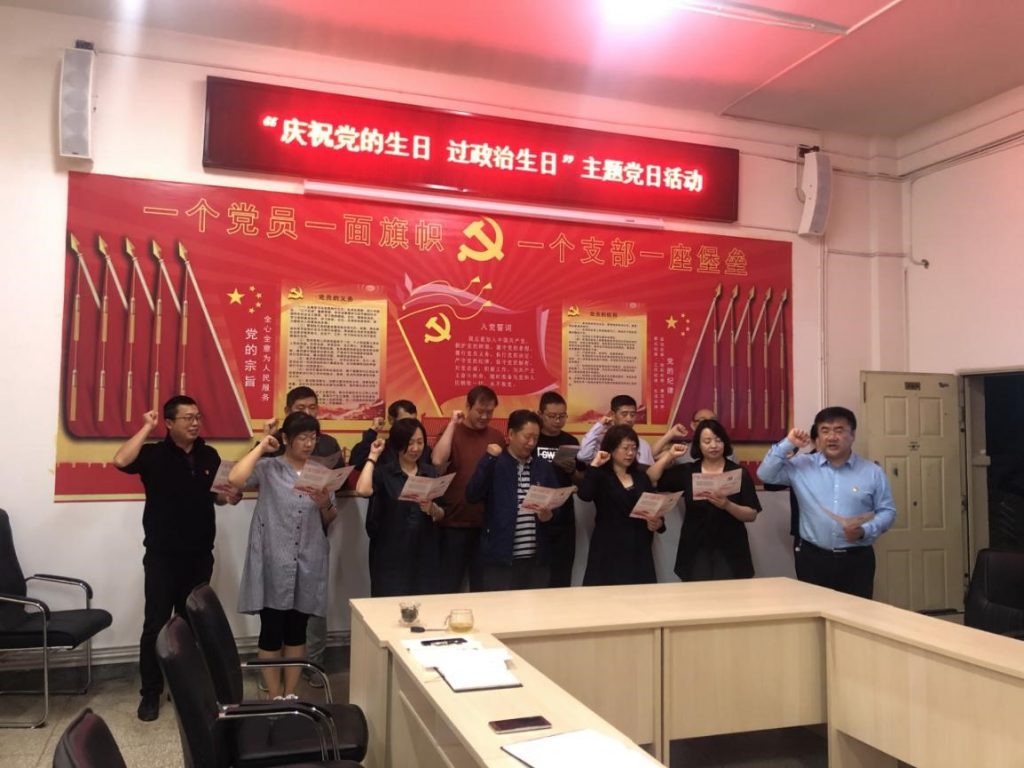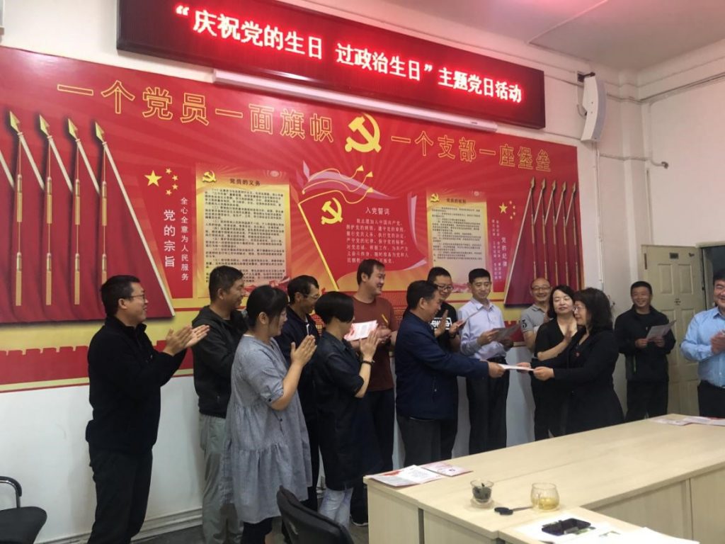 党课结束后,开展了“庆祝党的生日、过政治生日”主题党日活动。公司党总支书记肖辉同志向过政治生日的党员同志表示祝贺,希望公司全体党员同志们牢记党员身份,不负党的重任,永葆共产党员本色。紧接着,在江林同志的带领下,全体党员同志高举右手,庄严宣誓,一起重温入党誓词。公司为15名党员同志过“政治生日”,作为“生日礼物”,公司党总支统一印制“党员政治生日卡”赠予过“政治生日”的党员。