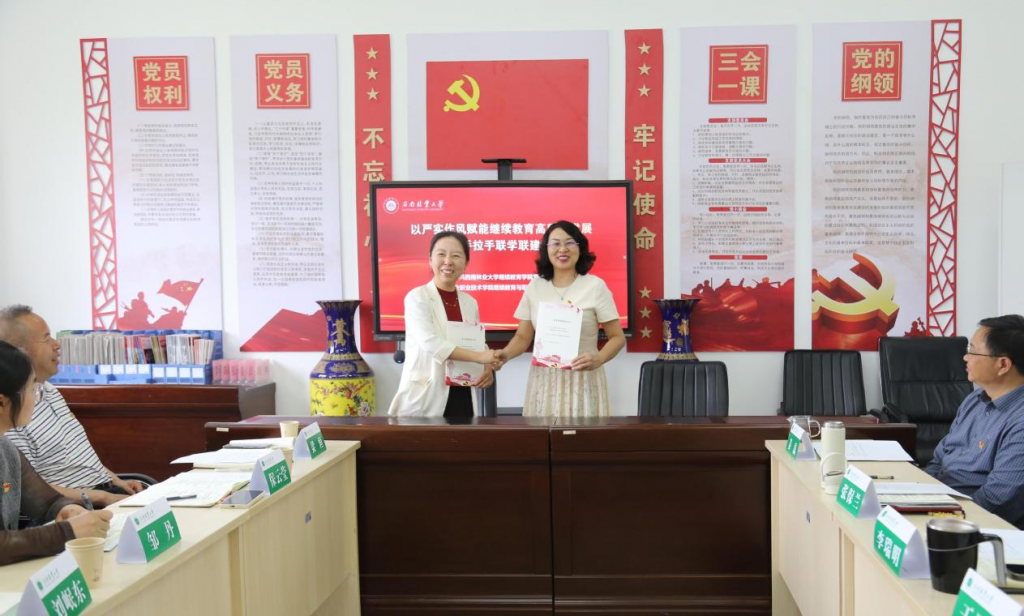 为深入学习贯彻习近平总书记关于加强党的作风建设的重要论述和中央八项规定及其实施细则精神,推动党建引领继续教育高质量发展,4月23日,美加墨世界杯官网公司党总支、中共云南林业职业技术公司继续教育与职业培训公司直属支部签署党建联建协议,围绕“学习贯彻习近平总书记关于党的建设的重要思想”开展了党建联建后的第一次主题党日活动。活动由美加墨世界杯官网公司党总支书记张保兰主持。
