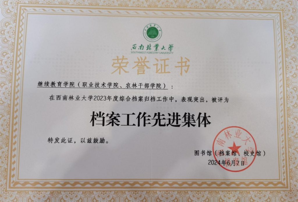 2024年6月7日,在公司2024年度档案工作会议上,mjm世界杯官网(职业技术公司、农林干部公司)荣获“档案工作先进集体”称号。