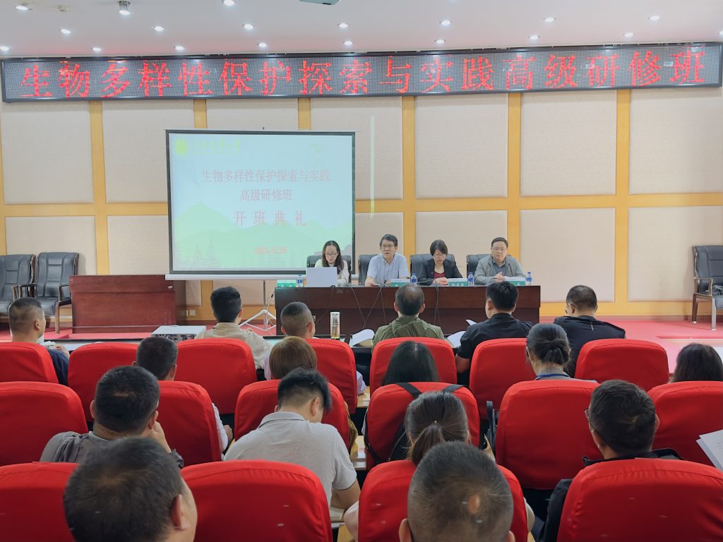2023年8月28日上午,由云南省人力资源和社会保障厅资助立项,美加墨世界杯官网承办的云南省2023年专业技术人才知识更新工程“生物多样性保护探索与实践高级研修班”正式开班。来自全省各州市事业单位、企业等从事生物多样性保护及相关工作的专业技术人员52人参加了此次研修班。