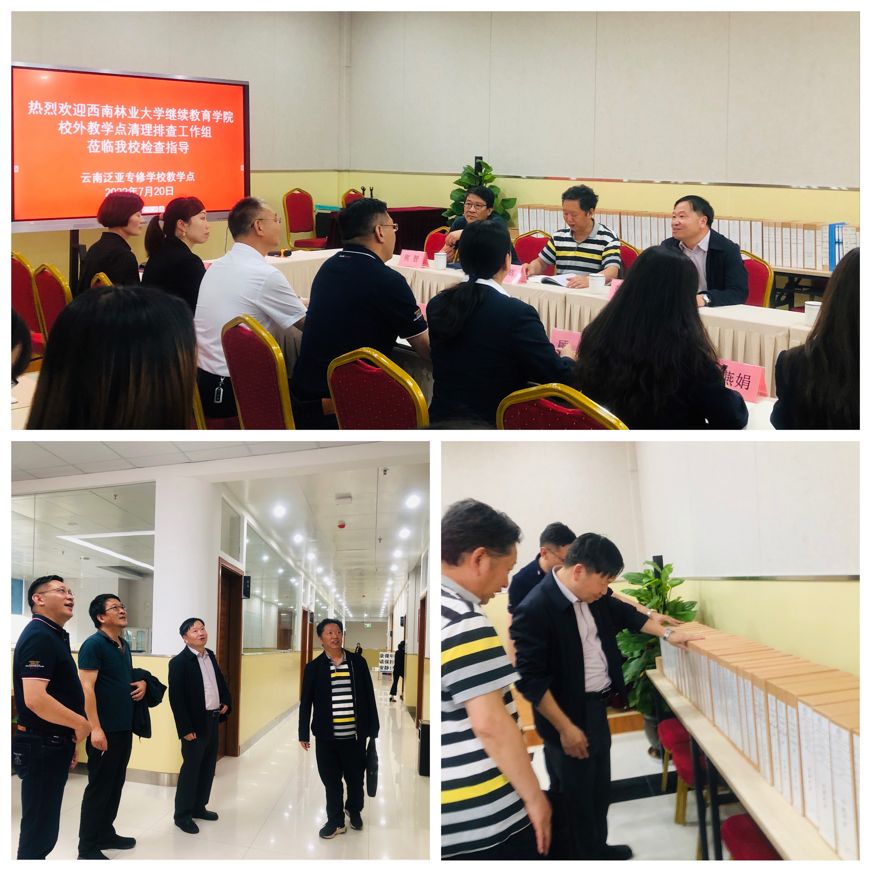 上午,调研组考察了玉溪市辰信职业培训公司教学点的教学场地、办公场所、实训基地,同时对基本教学条件、管理人员及团队配备等进行了详细了解。下午一行人至云南泛亚专修公司教学点进行调研、与教学点的管理人员进行了座谈,详细考察了教学点的办学软硬件条件,还着重检查了教学相关管理文件、教学活动记录档案等。