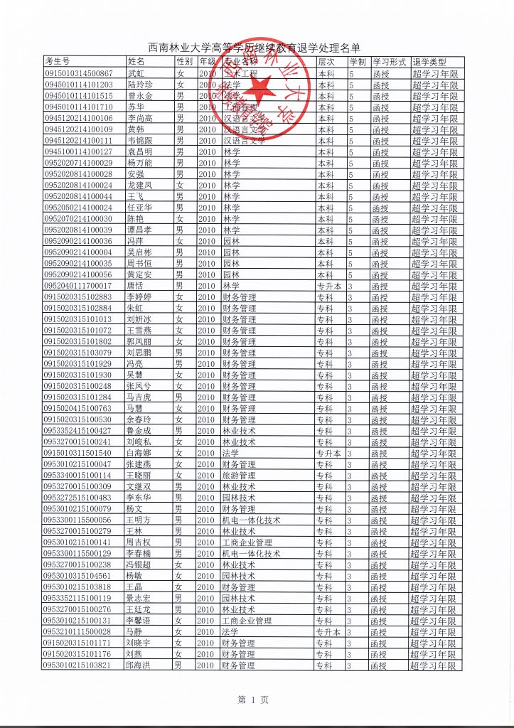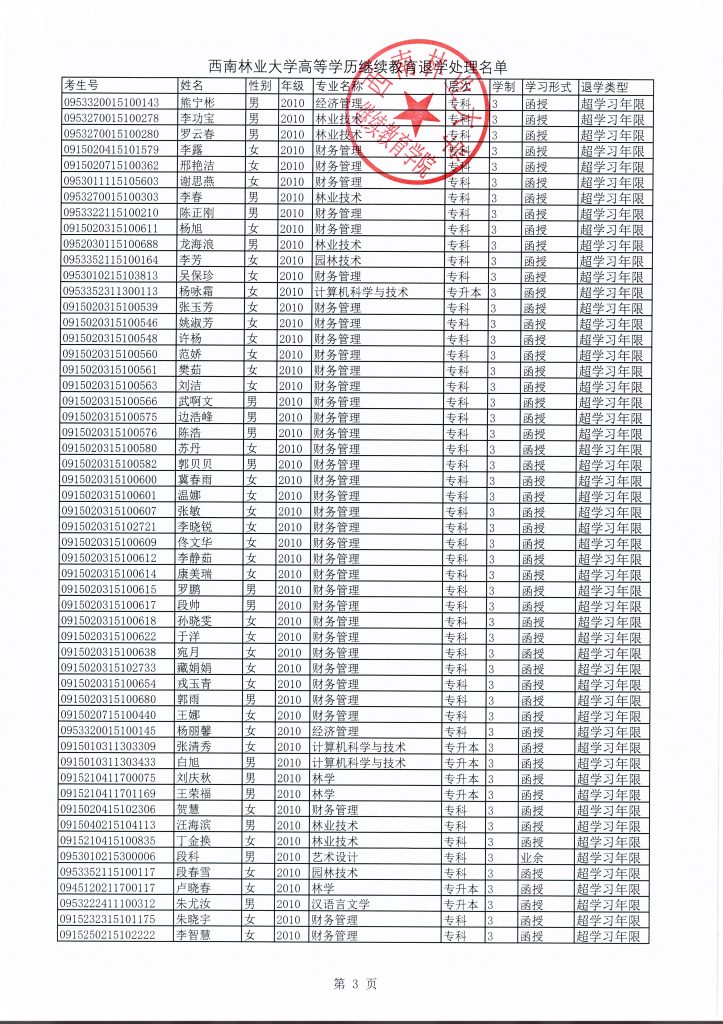 关于给予方雪莲等200人退学处理的决定
