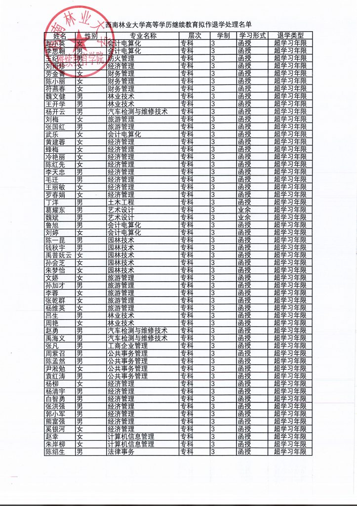 关于拟对228名高等学历继续教育员工作退学处理的公告