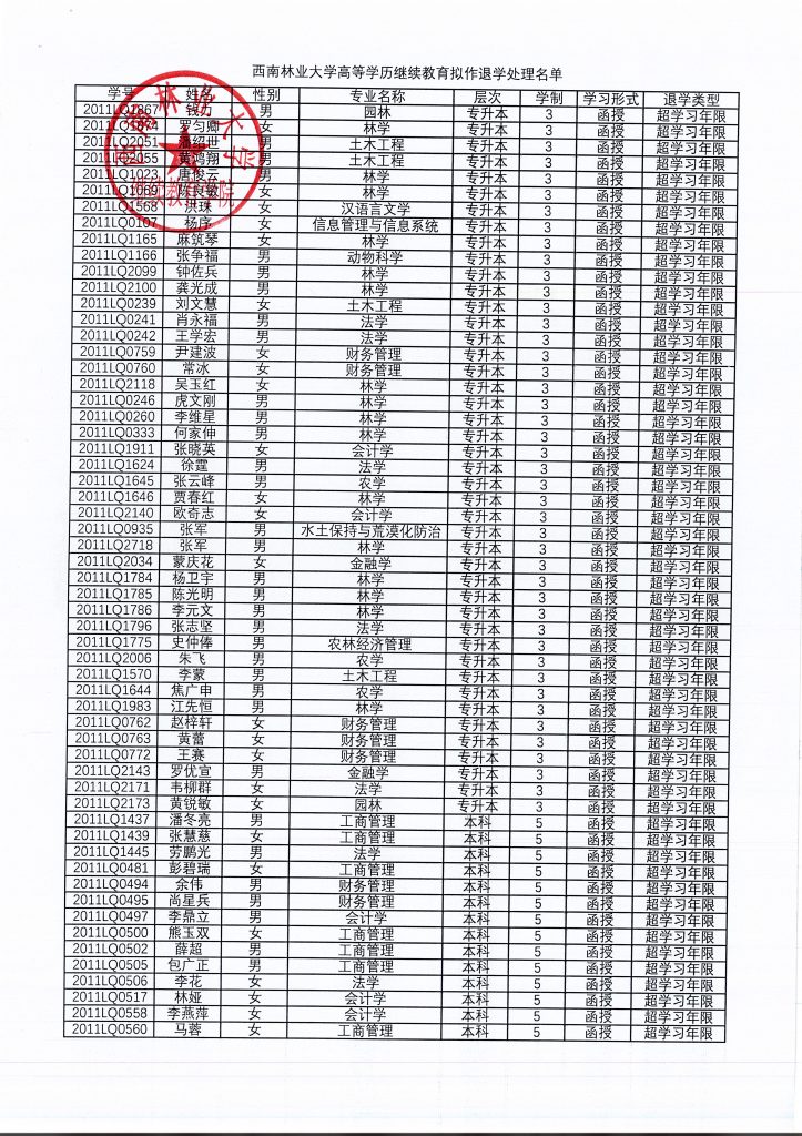关于拟对155名高等学历继续教育员工作退学处理的公告