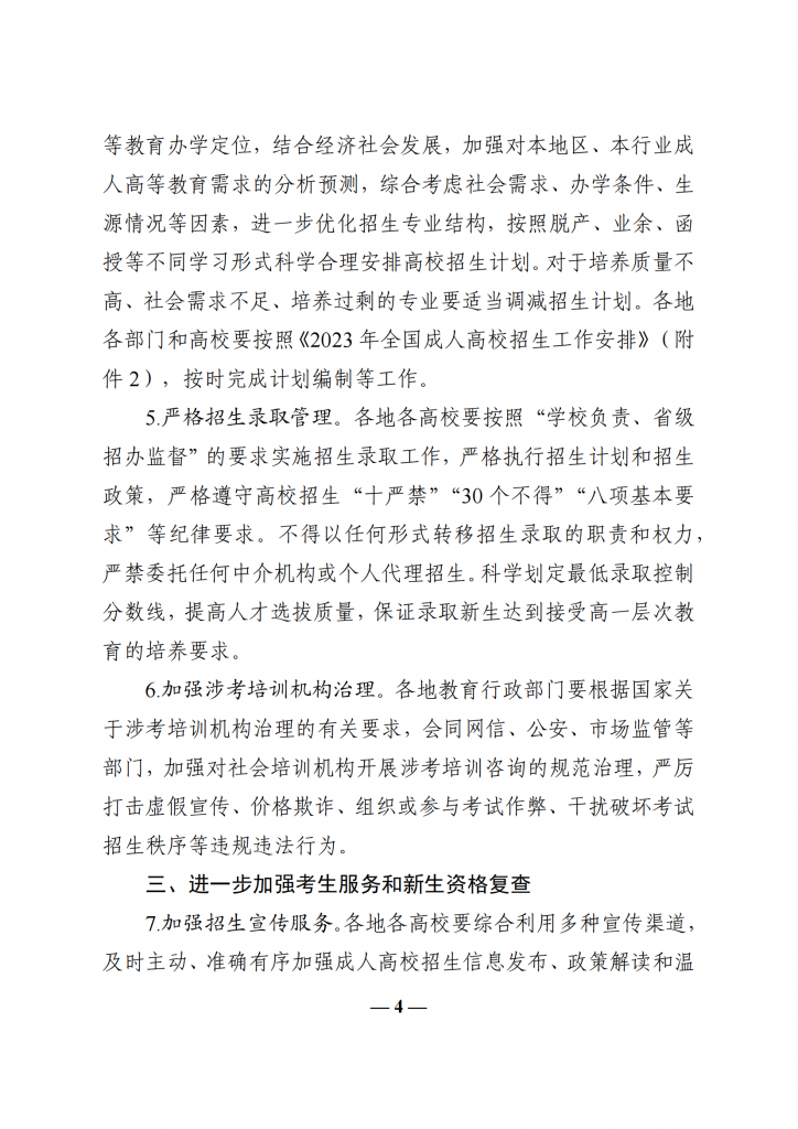 教育部办公厅关于做好 2023 年全国成人高校招生工作的通知