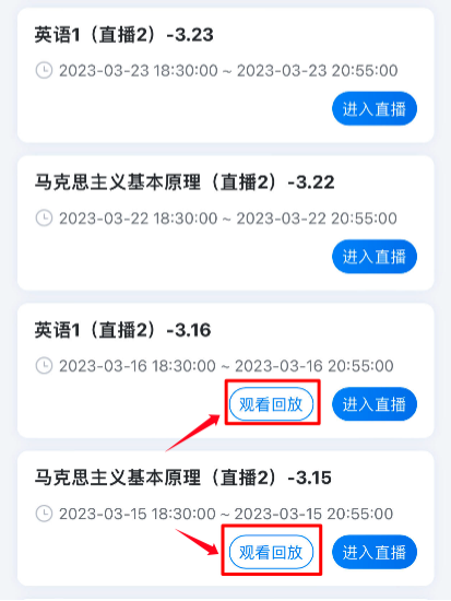 下载并打开“学起plus”APP,登录后,点击“直播课堂”模块;选择相应课程,点击“观看回放”。
