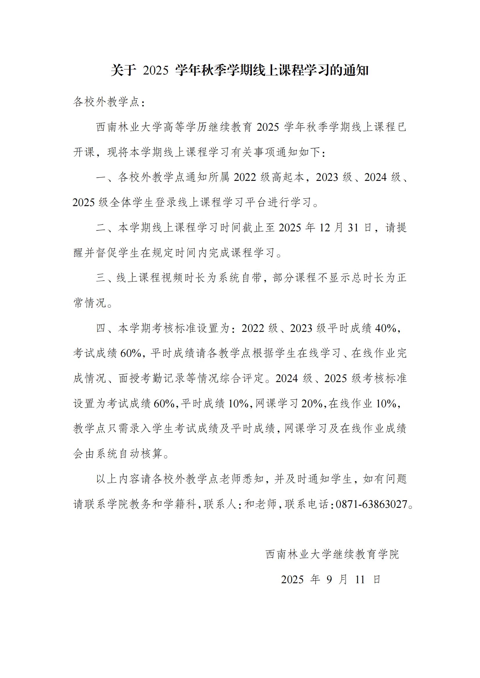 关于2025学年秋季学期线上课程学习的通知